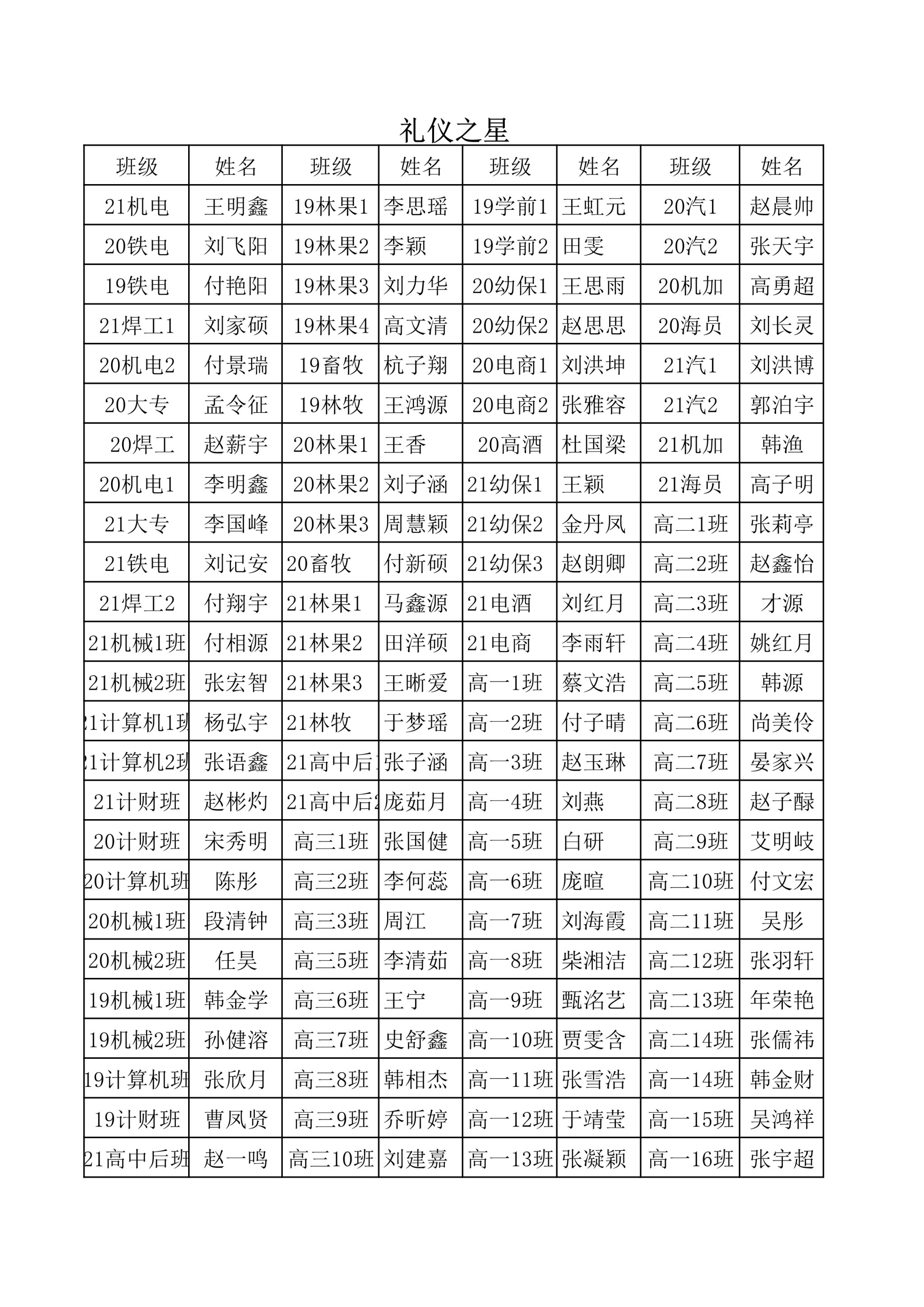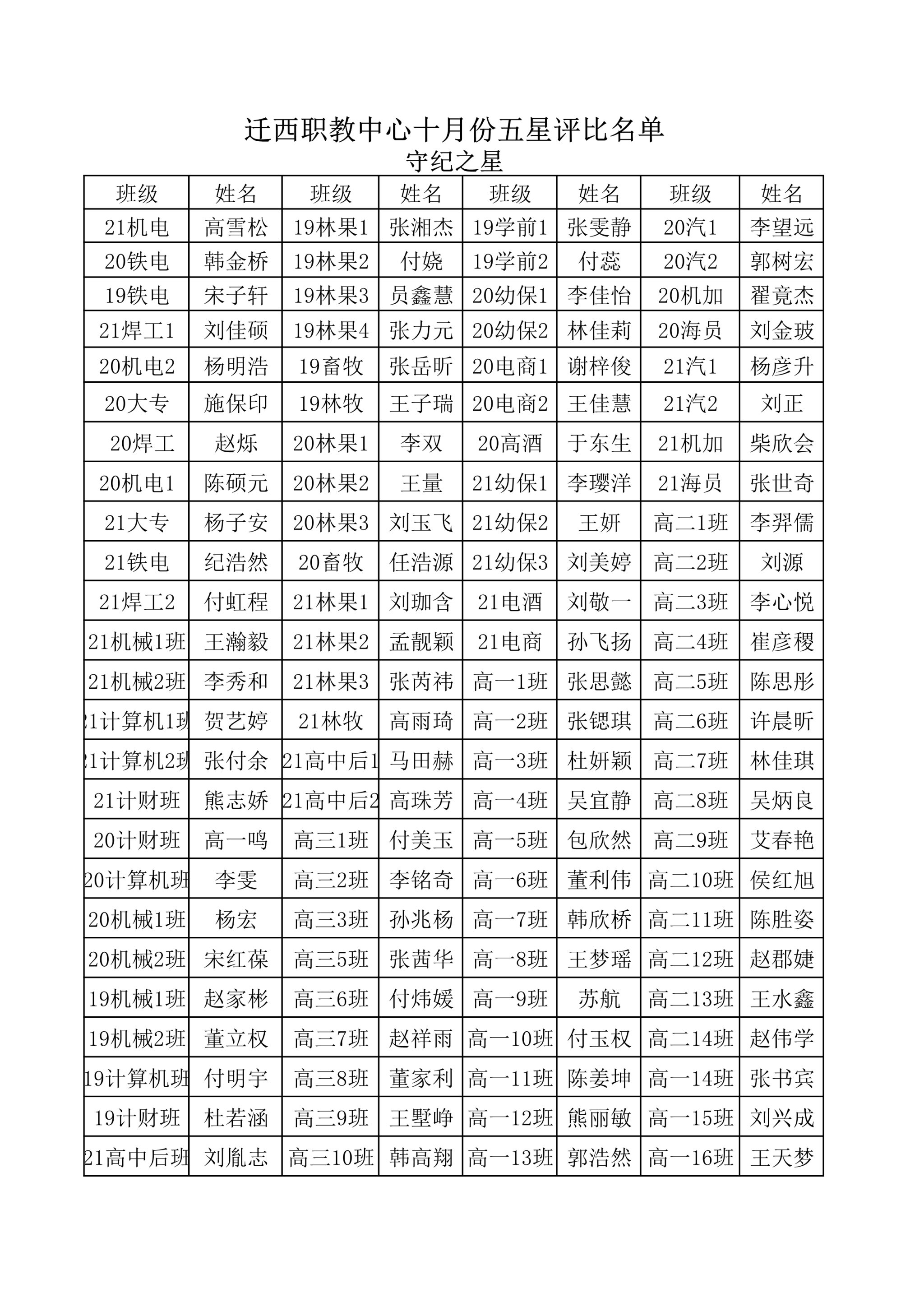 根据学校五星评比实施方案,现将我校十月份五星评比结果公示如下: