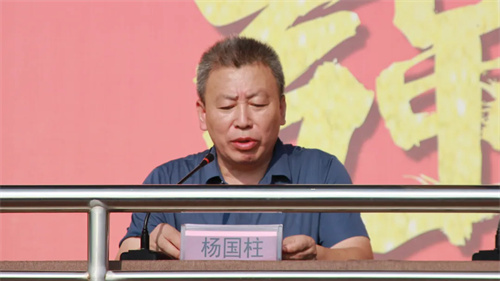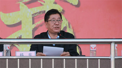 杨东在致辞中首先向参训的每一位新同学表示热烈的欢迎,向为军训工作付出辛勤汗水的各位领导教师表示衷心的感谢,向承担此次训练任务的教官表示崇高的敬意。