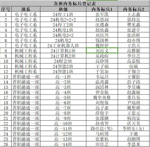 杨国柱副校长宣布内务标兵名单