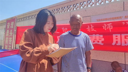 服务间隙,刘娜副校长带队走访村民,发放百余份《乡村机械维修需求调研表》。“咱村最缺农机维修培训”“希望多教教电动车电池养护”……村民们你一言我一语,为后续定向开展技能帮扶提供“第一手资料”。
