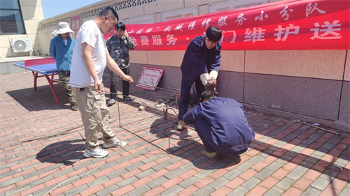 另一侧,汽修专业教师伊晓磊正带领团队为农用车辆进行“体检”:检测胎压、排查电路故障、更换老化零件,手把手教授村民日常保养技巧。“胎压不足不仅费油,高速行车还容易爆胎!”伊晓磊结合实车演示,用“土味儿”方言讲解农机安全操作规范,赢得村民阵阵掌声。