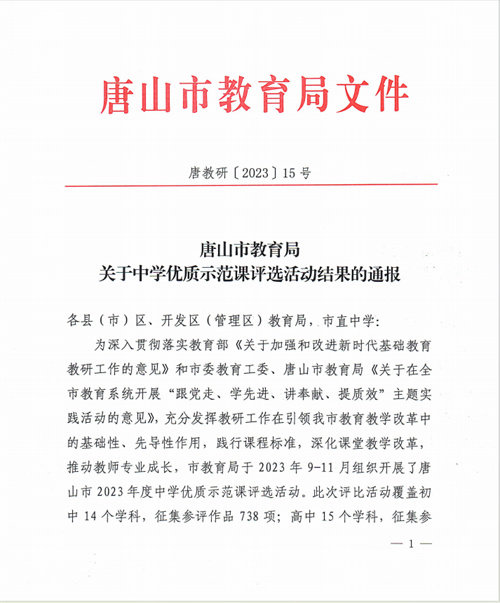 迁西职教中心普职融通处发挥教研工作引领教育教学改革中的先导性作用,践行课程新标准,深化教学改革,李晓明老师的《拟行路难》获得河北省基础教育精品课,刘娜思政团队在河北省教学能力大赛获得三等奖。报上去一批高中优质示范课,经过市局组织专家审核评阅,在唐教研〔2023〕15号《唐山市教育局关于中学优质示范课评选活动结果的通报》中,获得市级优质课奖项。