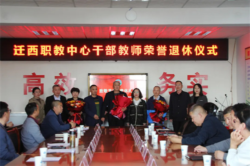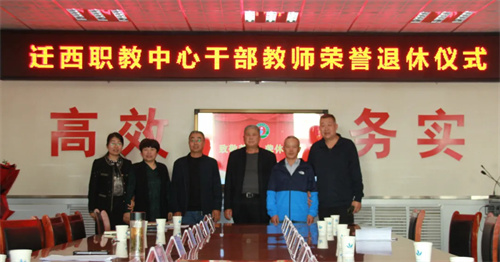 向荣休教师们多年来为学校事业发展作出的贡献致以崇高的敬意和衷心的感谢。荣休教职工几十年如一日,把美好年华献给了迁西职教中心,亲身经历和见证了学校的发展辉煌,学校的一砖一瓦都饱含着他们深深的情感,一草一木都浸润着他们浓浓的情怀。
