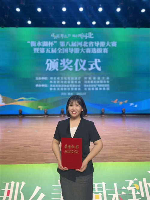 1.在河北省导游风采大赛中,赵宏业老师为全省观众推介迁西美景,介绍迁西乡村的风土人情和历史文化,荣获河北省金牌导游员。