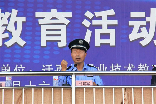 为进一步加强在校生法治宣传教育,营造良好的法治氛围,以法治之力护航青少年健康成长,9月27日上午,迁西职教中心举办法治教育讲座暨安全纪律教育大会。迁西县职教中心副校长李志富、学生处主任贾宏亮、学生处副主任马伟、学生处副主任付铁军、德育处主任张义会、德育处副主任王立群出席大会,迁西县拘留所所长付建军应邀出席,全校学生、班主任及相关处室负责人参加。