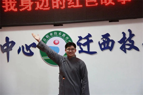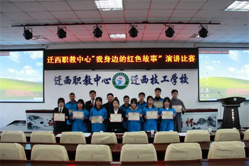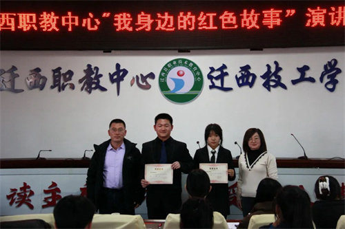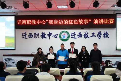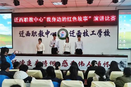 迁西职教中心举办“我身边的红色故事”演讲比赛。经过班级推荐、系部选拔、全校初赛等环节,计14名选手进入决赛。团校委书记润桂英、团委干事王树良、校朗诵社团指导教师郭有芝、郭颖玉、团省十六大代表董博妲、各部系团员教师代表出席,各班团支书、团员代表及部分优秀学生参加本次活动。