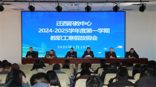 1月19日下午,迁西职教中心召开2024-2025学年度第一学期期末全体教职工大会。党总支书记杨国庆,校长杨东,副校长侯振华、李国春、杨国柱、李志富出席本次会议。中层干部及全体教职工参加。