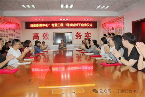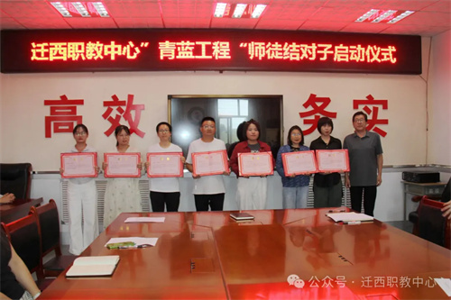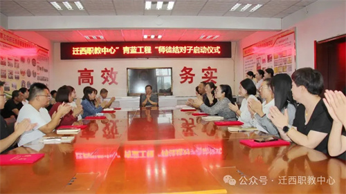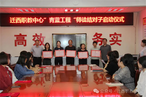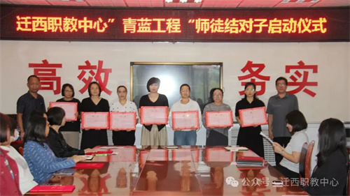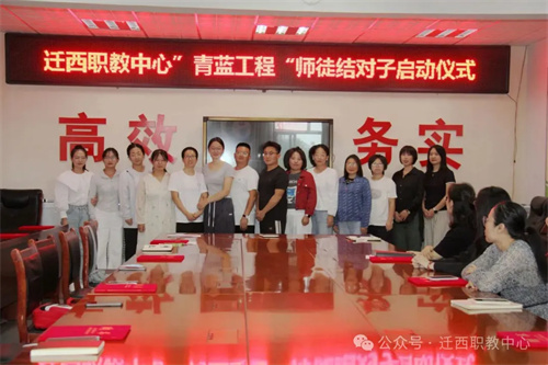 9月16日,迁西职教中心举行“青蓝工程”师徒结对启动仪式。学校领导、结对师徒及教师代表齐聚一堂,共赴一场“以老带新、以新促老”的教育传承之约。