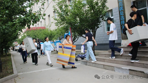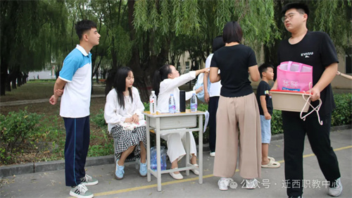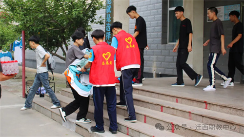 全程引导,校内路口设置清晰指示牌,志愿者红马甲穿梭其间协助行李搬运。