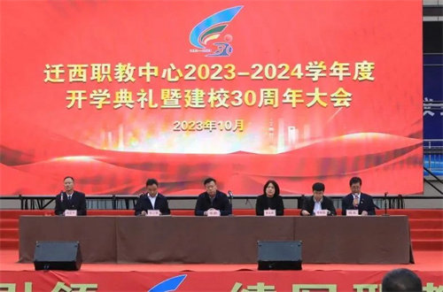 上午9点,迁西职教中心2023年秋季开学典礼暨建校30周年盛会在学校运动场隆重举行。