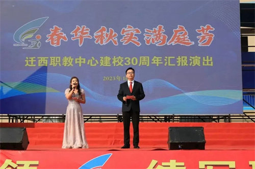 随后,迁西职教中心《春华秋实满庭芳》主题汇报演出在《盛世欢歌》舞蹈中拉开帷幕,唱响了职教人同庆建校30周年的序章。