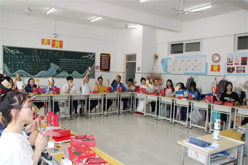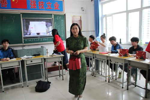 6月6日,党雪莉老师自费为班上每一名学生准备了高考礼物——台灯和高考祝福卡片。