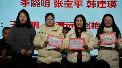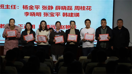 程蕾宣读学习标兵、期末考试单科状元、优秀班干部、优秀青年教师、班主任教师名单。